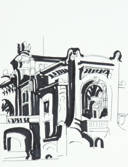 1002 – For €100 – ‘Casino Constanta’ – Felt pen drawing on watercolor paper – 25 x 32 cm – 2014