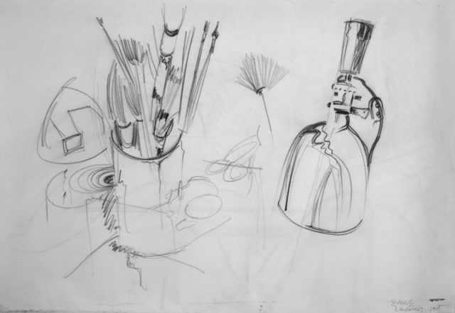1402 – For €200 – ‘Lampe, pinceaux et ciseaux’ (Lamp, Brushes And scisors) – Lead pencil drawing on Arches pape – 65 x 100 cm – Signed – 1985 / Campagne Ulule EN / Par Charles GUY 1402 – ‘Lampe, pinceaux et ciseaux’ – Lead pencil drawing on Arches pape – Signed – 1985 Size: 65 x 100 cm Personal presentation suggestion: to be mounted on a rigid frame or tacked to a board