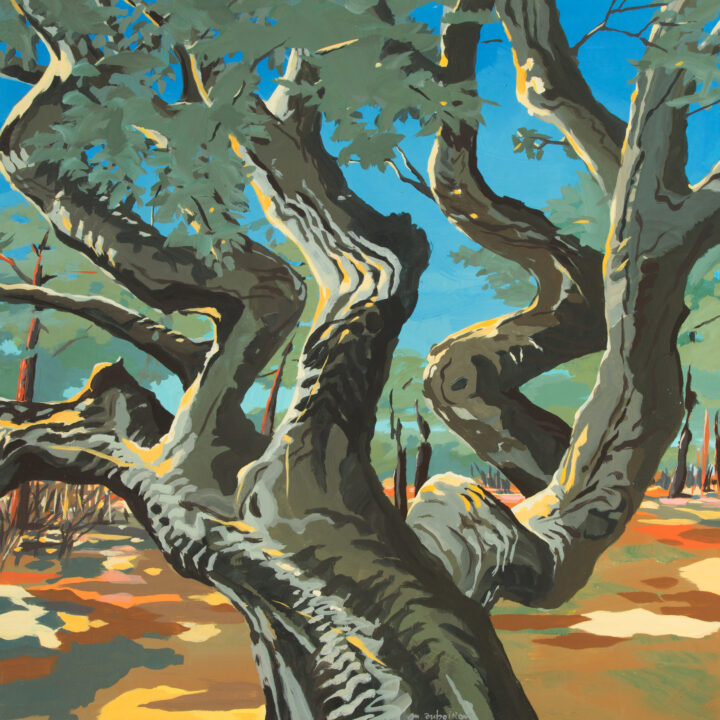 Corse, écorces – N°1 : Le Chêne de Cala Rossa / de Corse, Les peintures / Par Charles GUY N°1 – Le Chêne de Cala Rossa – Acrylique sur toile – 180 x 180 cm